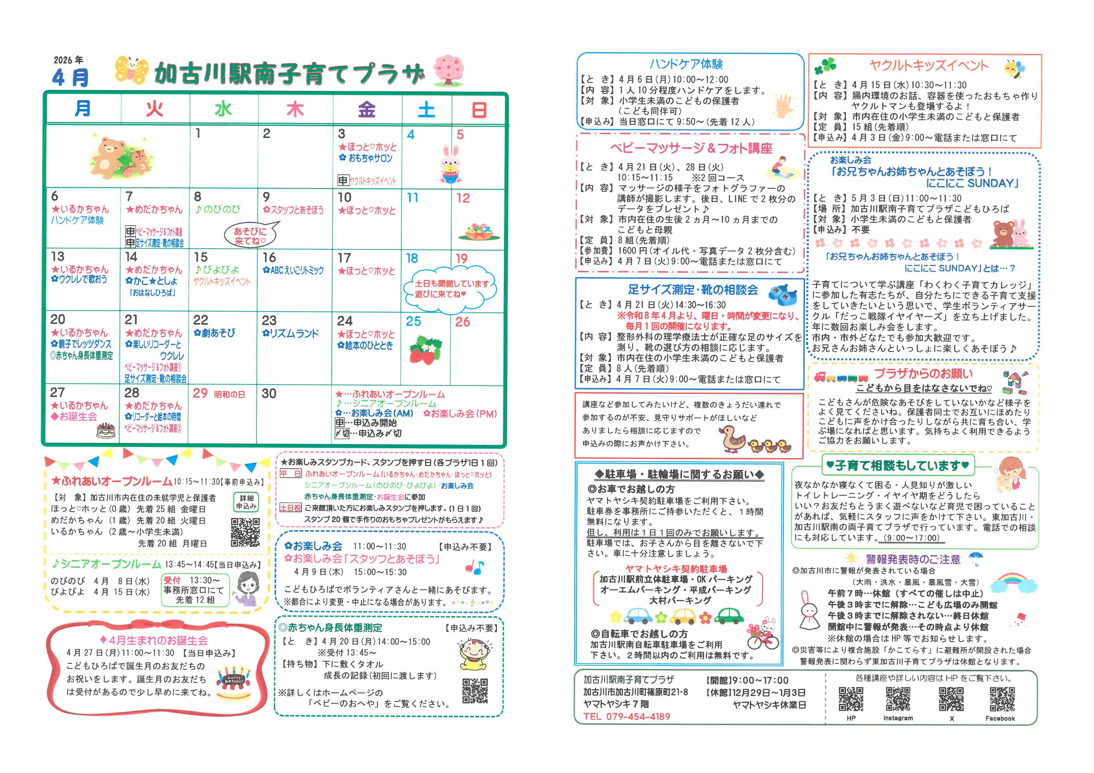 PDFデータ⇒加古川駅南子育てプラザおたより4月号